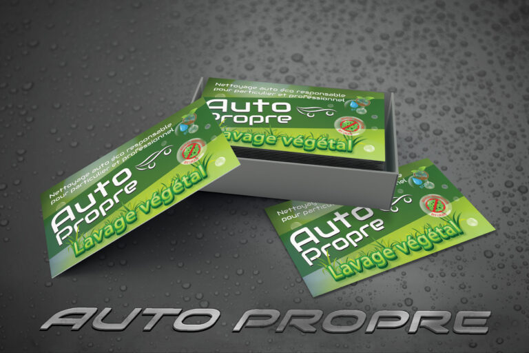 Proposition de différent support de communication à partir de l’identité visuelle existante de l’enseigne EIRL AUTO PROPRE : Logo, police d’écriture et code couleur…. Ca se complique pour moi en changeant de mon thème habituel, mais super intéressant de pouvoir s’entrainer sur de réels projets où le travail sera exposé et ouvert à la critique.